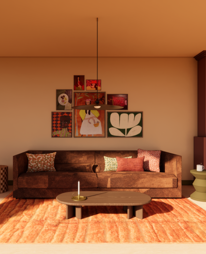 Een appartement dat barst van lef. Voor dit unieke 3D-ontwerp in Amsterdam Oud-West, kozen we niet voor de veilige weg, maar voor een explosie van kleur en karakter. Denk aan diep oranje, intens groen, rijke aubergine en speels roze, een palet dat sprankelt van energie en warmte.